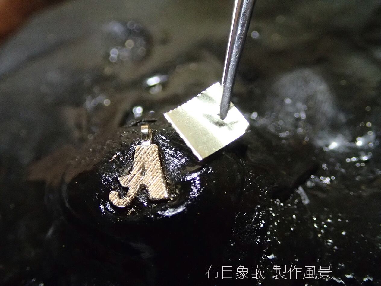 彫金の伝統工芸技法である「布目象嵌」加工を施し、ピンバッチ・タイタックを作りました。