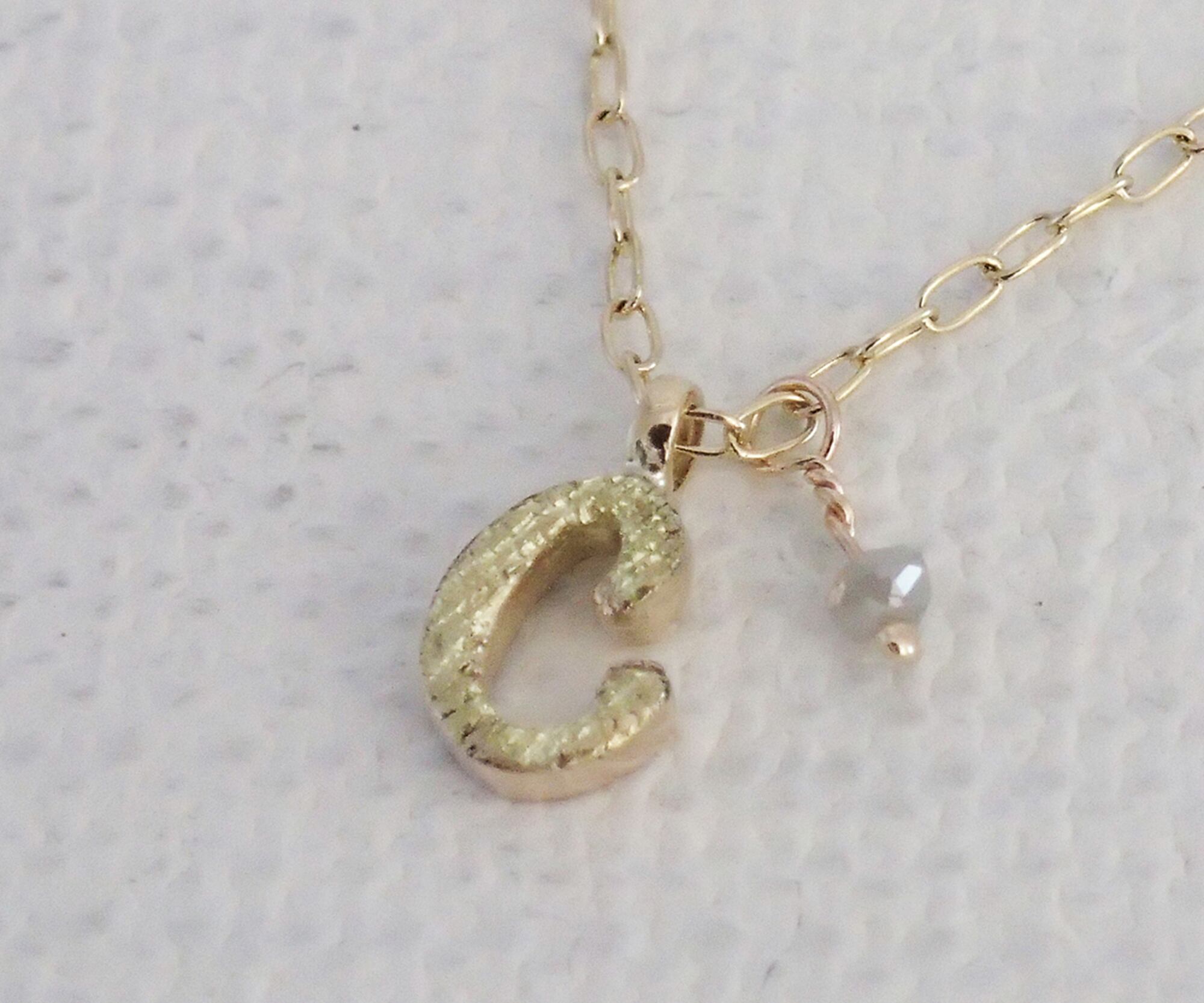 コロンとしたフォントデザインの1cm足らずのイニシャルパーツ。