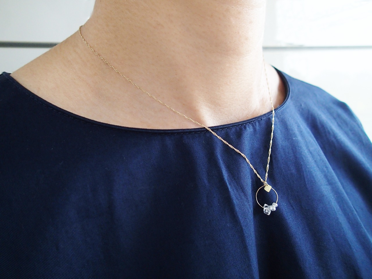K10イエローゴールドのループにとおった3つのハーキマーダイヤモンド。
